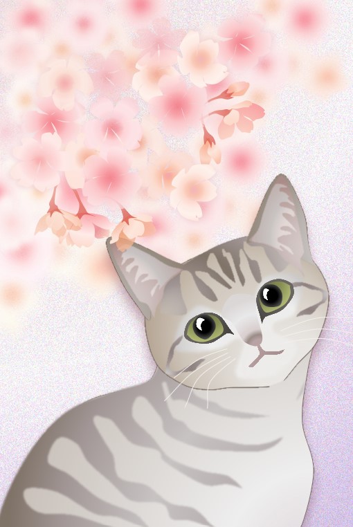may's shop 縁側:ポストカード【桜とキジ猫 縦】
