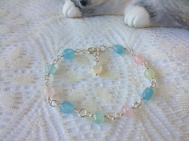 - アクアマリンを中心に ベリル(モルガナイト グリーンベリル)を使い ふわっとした華やかさのあるブレスレットです。