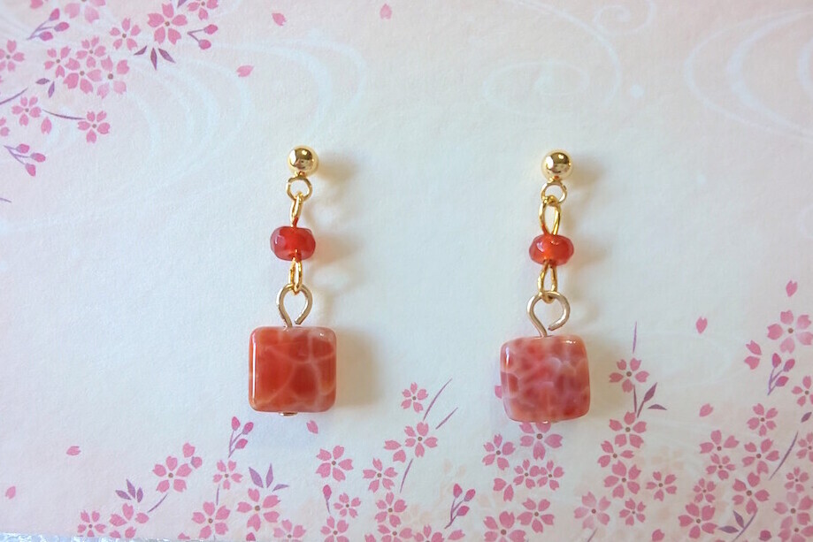 さくら庵 :カーネリアンのピアス(2石)(金具交換可)